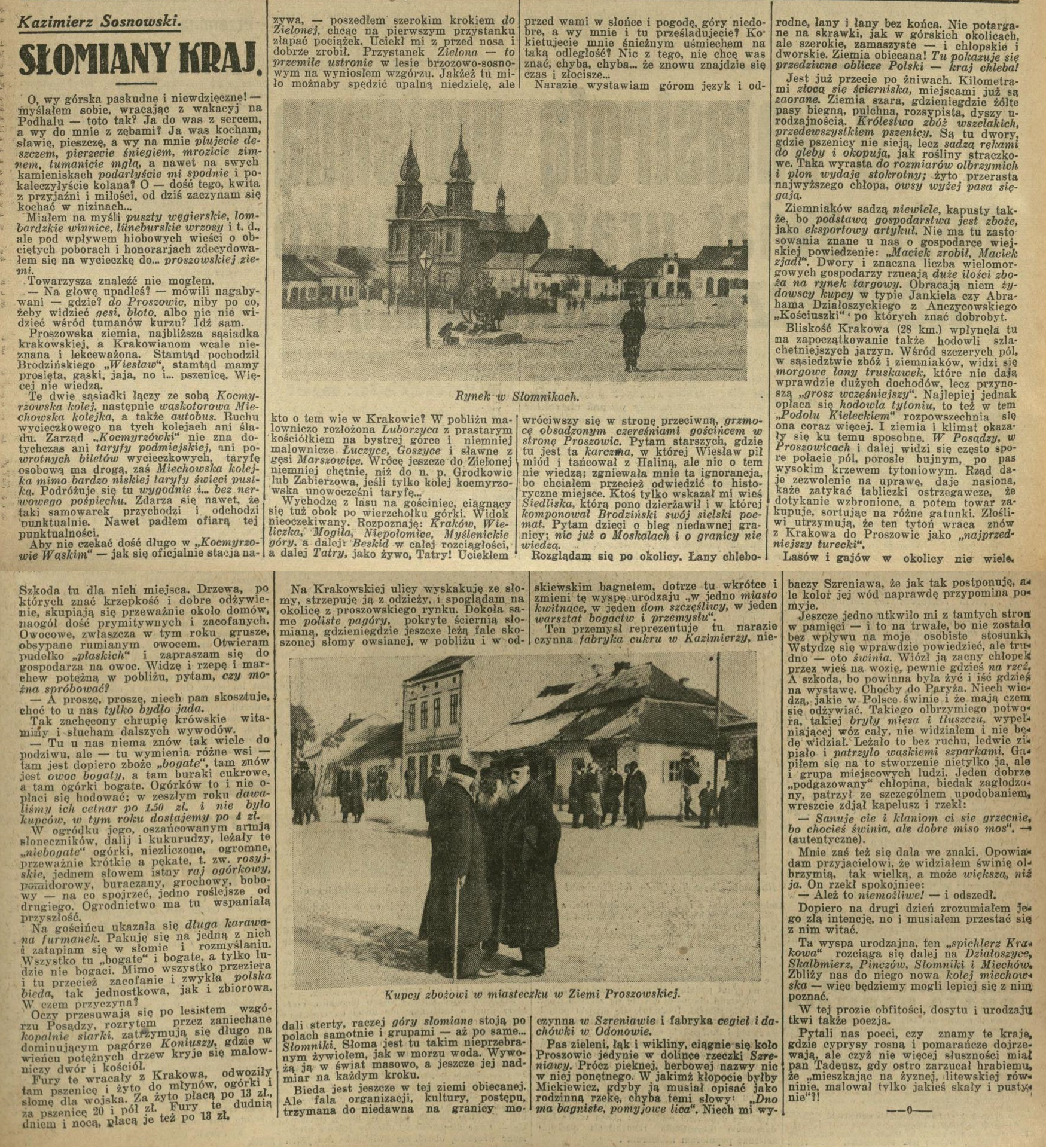 serwis IKP / Skarby ZP / pożółkłe łamy / gazety / Co na Ziemi Proszowskiej w 1933 roku zastał Kazimierz Sosnowski