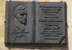 tablica poświęcona pamięci Adama Grzymały-Siedleckiego na frontonie domu gdzie znajduje się izba pamięci poświęcona artyście (fot. akant.telvinet.pl)
