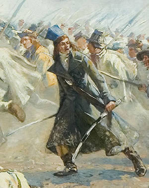 obraz Bronisława Gembarzewskiego, "Wjazd przez ul. Floriańską na czele kosynierów"