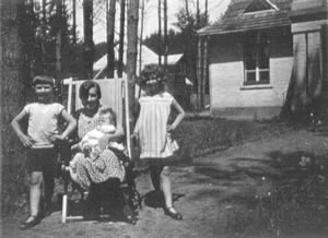 Zbigniew Herbert, jego matka z małym Januszkiem i Halina Herbert na tle domu w Brzuchowicach (fot. "Między LOGOS A MYTHOS")