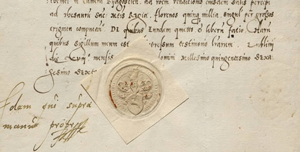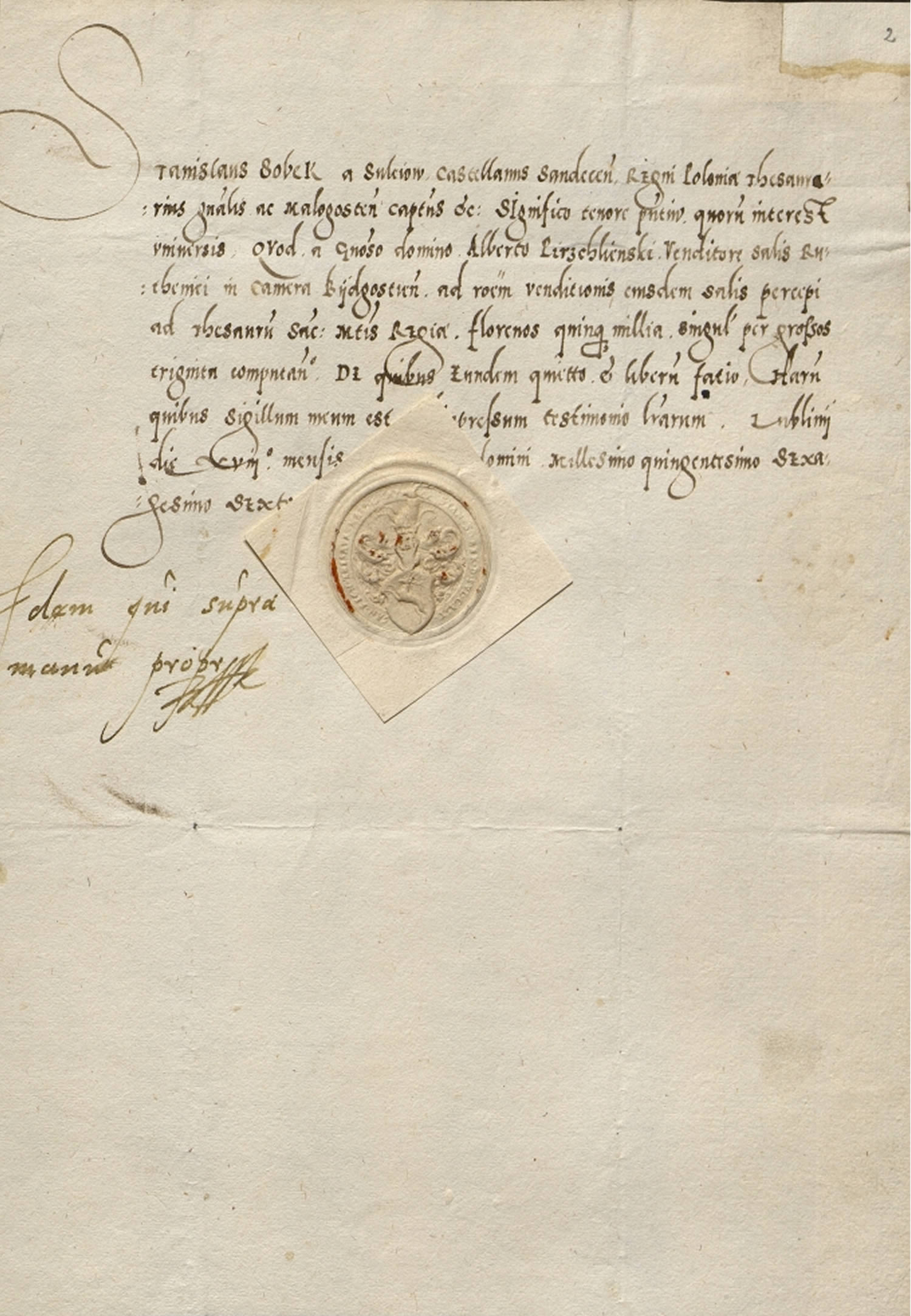 pieczęć i podpis Stanisława Sobka z Sulejowa, Podskarbiego Wielkiego Koronnego, z roku 1566