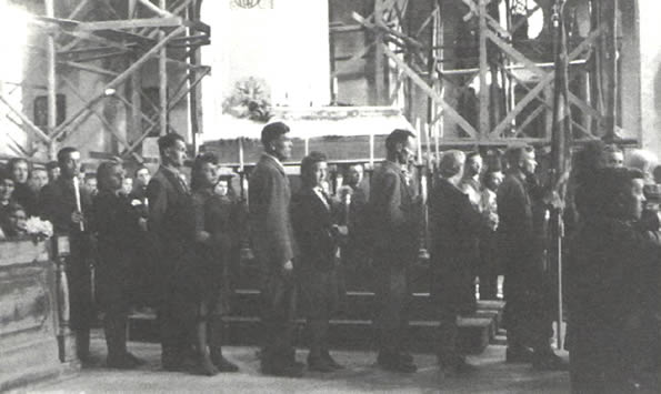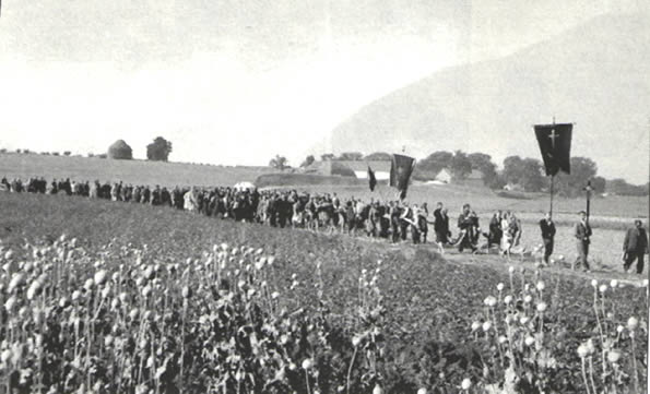 kondukt pogrzebowy z trumną ppor. "Pazura" w drodze z kościoła w Mstyczowie na miejscowy cmentarz (19.VIII.1944 r.)