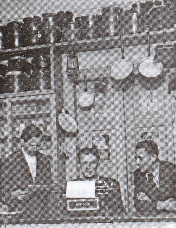 zdjęcie grupowe zespół red. "Szarża": Stanisław Kałwa "Sokolnicki", Andrzej Krzyżanowski "Wiąz", Stanisław Suwałkowski "Zawada" - placówka Charsznica