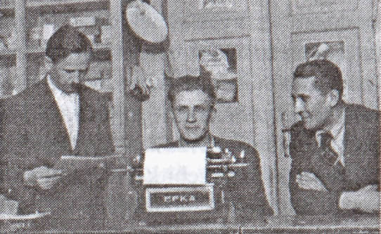 [...] W takim to ruchliwym miejscu, w narożnym pomieszczeniu mieściła się konspiracyjna redakcja "Szarży". Gdy tylko drzwi frontowe Spółdzielni zaniknęły się za ostatnimi klientami, a okiennice zostały zamknięte, w magazynie na zapleczu sklepu zaczynała się zupełnie inna praca (...) Woźny Spółdzielni "Chwat" wdrapywał się na drabinę i ze stosów podobnych do siebie (...) worków i paczek wydobywał (...) maszynę do pisania "Efkę", papier, matryce i kalkę. Ps. "Liszka" (Stanisław Kałwa), będący duszą, placówki wyciągał (...) ostatnie komunikaty radiowe i inne materiały dostarczone z nasłuchu i zaczynała się redakcyjna robota. Woźny "Chwat" (Jan Mazur) stał na straży przy tylnych drzwiach wyjściowych (...) "Wiąz" zasiadał przy maszynie i przenosił zapisy na matryce numeru "Szarży". Wśród ciszy mozolnie stukała "Efka".