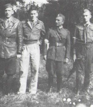 żołnierze IV/120.pp AK, od lewej: "Twardy" Stanisław Peterson, Jani Groenewald oficer RAF, Beteha Bohdan Thugutt, nn