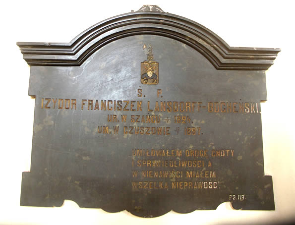 Tak było z kościołem w Małoszowie i rodziną Ponińskich, a teraz jest czas na kościół w Pałecznicy i rodzinę Bocheńskich. Tablica wotywna z kościoła w Pałecznicy głosi: Izydor Franciszek Lansdorff Bocheński ur. w Szańcu 4 kwietnia 1824 r. umarł w Czuszowie 10 maja 1897 r. Umiłowałem drogę cnoty i sprawiedliwości a w nienawiści miałem wszelką nieprawość.