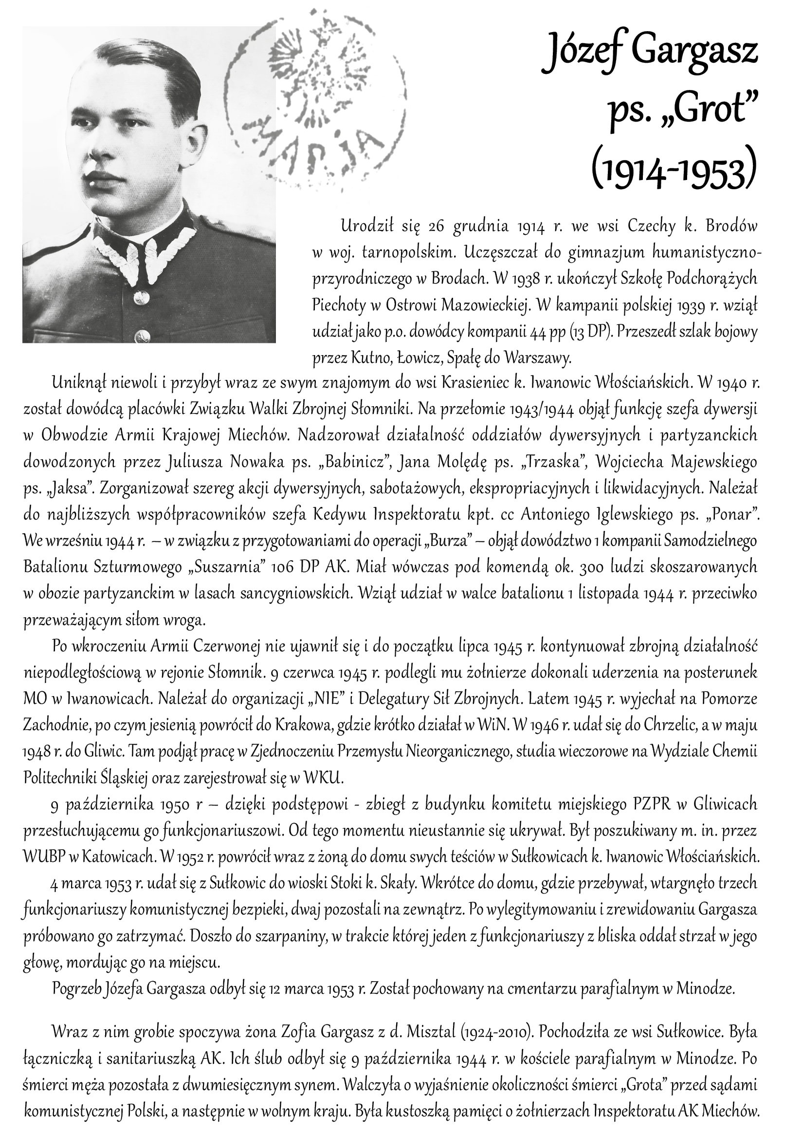 Więcej szczegółów z życia majora można poznać w biogramie zamieszonym w naszym Serwisie: TUTAJ!