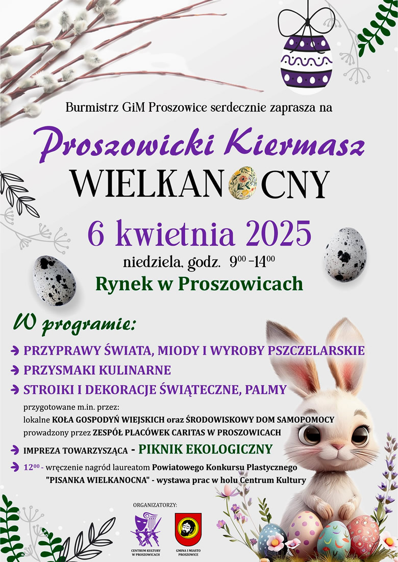 W niedzielę, 6 kwietnia od godz. 9.00 do 14.00 na proszowickim Rynku odbędą się dwa ciekawe wydarzenia, Kiermasz Wielkanocny i Piknik Ekologiczny.
