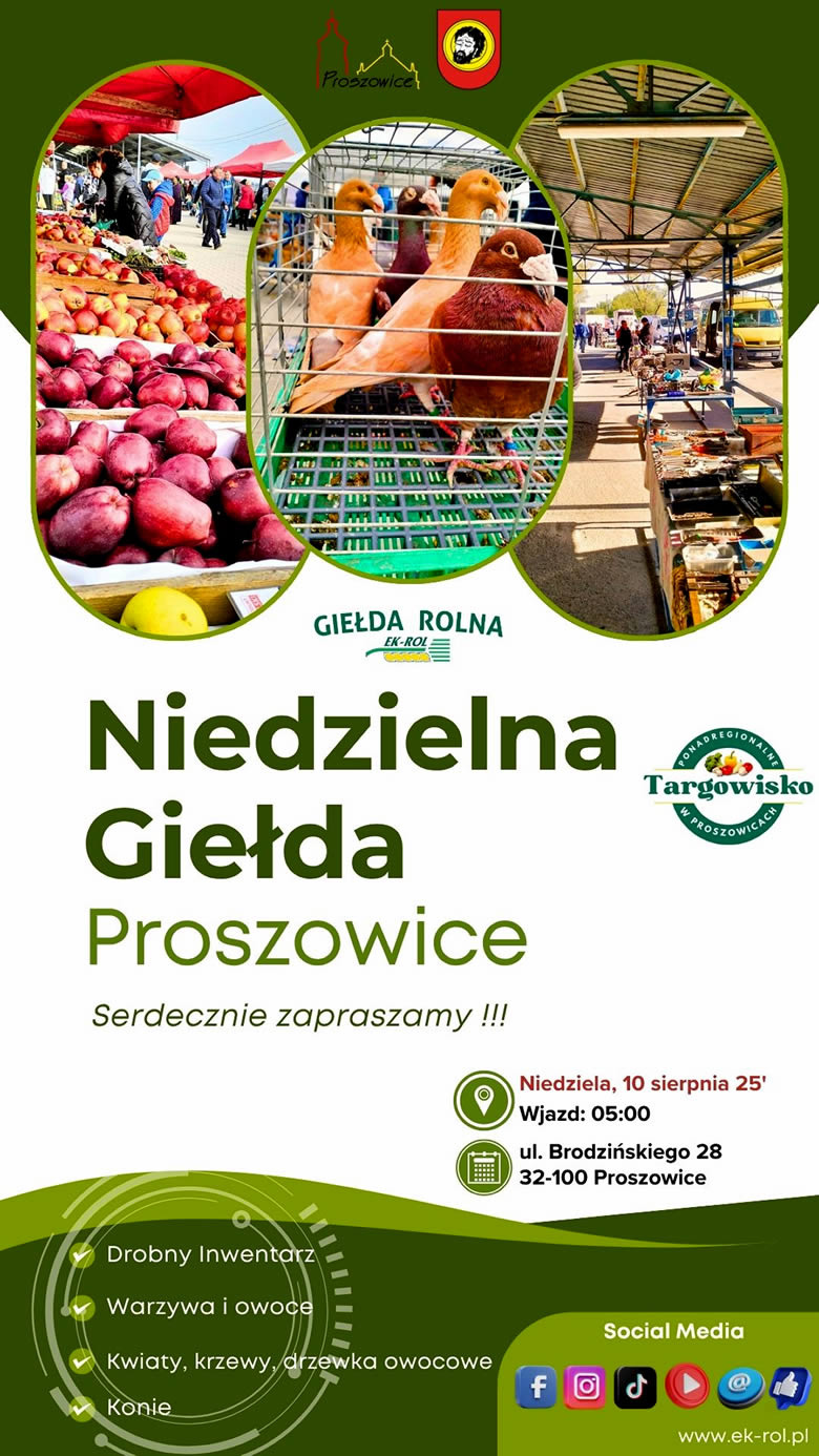 W niedzielę, 10 sierpnia już od godz. 5.00 zapraszamy wszystkich na proszowicką Giełdę Rolną Ek-Rol.